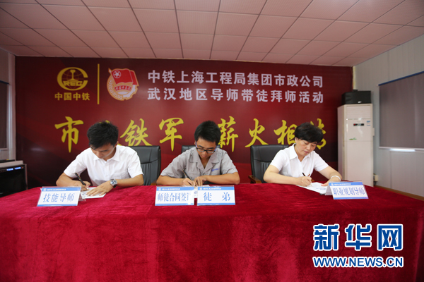 8月31日上午10時,在中鐵上海局市政公司武漢地鐵蔡甸線七標項目部“市政鐵軍 薪火相傳”拜師活動現場,13名新入職大學生與他們的專業指導師父和職業規劃導師共同簽訂師徒合同,正式拉開了工地“導師帶徒”推行雙導師制的序幕。拜師現場,師父還送給徒弟工地“文房四寶”——卷尺、...
