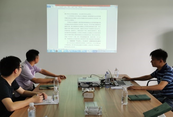 7月17日,淮安項(xiàng)目黨支部開展“不忘初心,牢記使命”主題教育工作宣貫會(huì)。全體黨員及領(lǐng)導(dǎo)干部參加會(huì)議,會(huì)上,黨支部書記傳達(dá)了習(xí)近平總書記、張宗言總裁關(guān)于 “不忘初心、牢記使命”主題教育工作講話精神等內(nèi)容,對(duì)其重點(diǎn)概念和內(nèi)涵進(jìn)行一一解讀。隨后,為大力推進(jìn)主題教育工作在項(xiàng)目走深走實(shí),項(xiàng)目黨支部書記作了動(dòng)員部署:黨員干部要深入學(xué)習(xí)“不忘初心,牢記使命”主題教育的重大意義和總要求,準(zhǔn)確把握和理解這一總要求,才能確保主題教育開展見成效;要守初心、擔(dān)使命,履職盡責(zé),時(shí)刻向先進(jìn)黨員看齊,鞭策自己,不忘初心,把握現(xiàn)在,以實(shí)際行動(dòng)踐行黨員標(biāo)準(zhǔn)。(張佩佩)